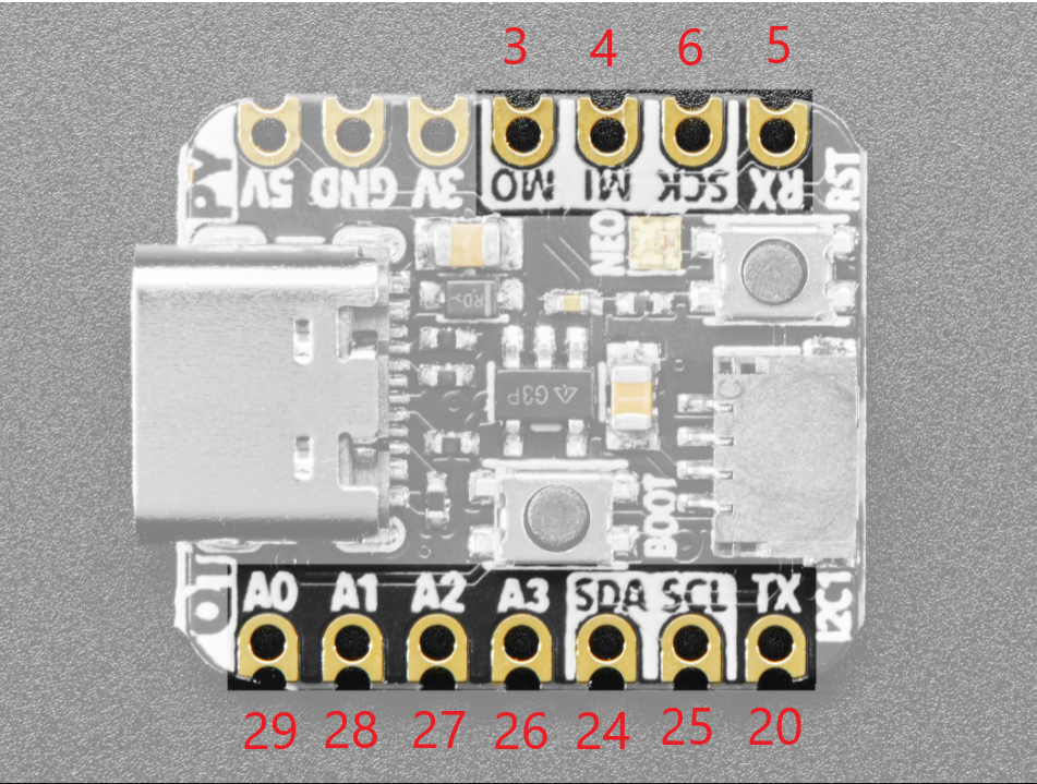 불행히도 Adafruit 사이트는 모든 사용자를 Pi SDK가 아닌 CircuitPython으로 안내하려고 시도하므로 결과적으로 RP2040 장치에 대한 "Pinout" 페이지의 Pinout 페이지에는 GPIO 번호에 대한 참조가 포함되지 않습니다.