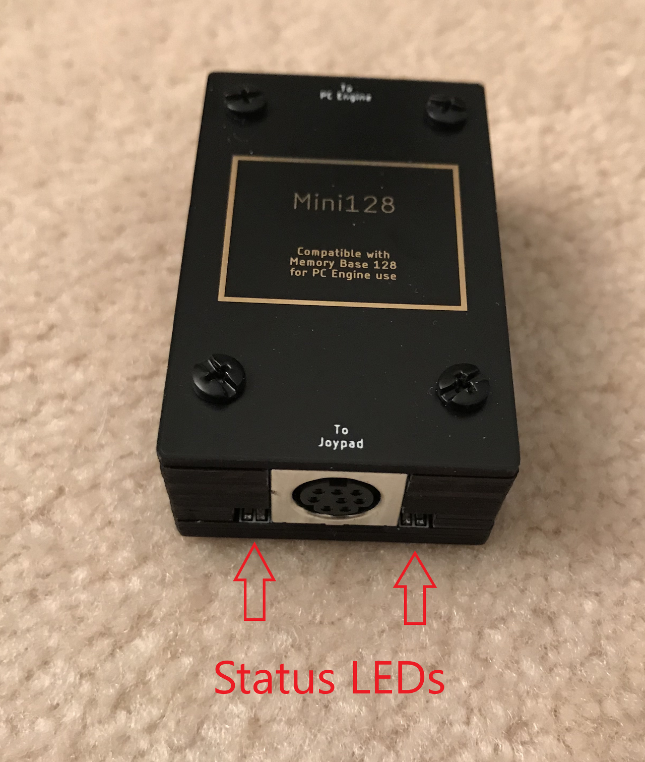 상태는 메인 보드의 LED로 표시되며 조이패드 커넥터에 인접한 장치에 움푹 들어가 있습니다.