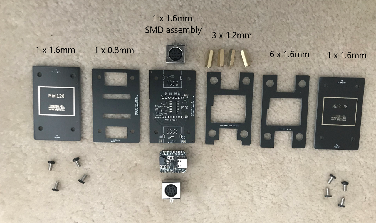 - 메인 보드 = "PCE128_Rev_C2_Main"의 1 레이어, 1.6mm 두께, HASL, SMD 어셈블리 보드(참고: 일부 부품은 이전 "B" 버전에서 변경되었습니다. 상호 교환 불가능)