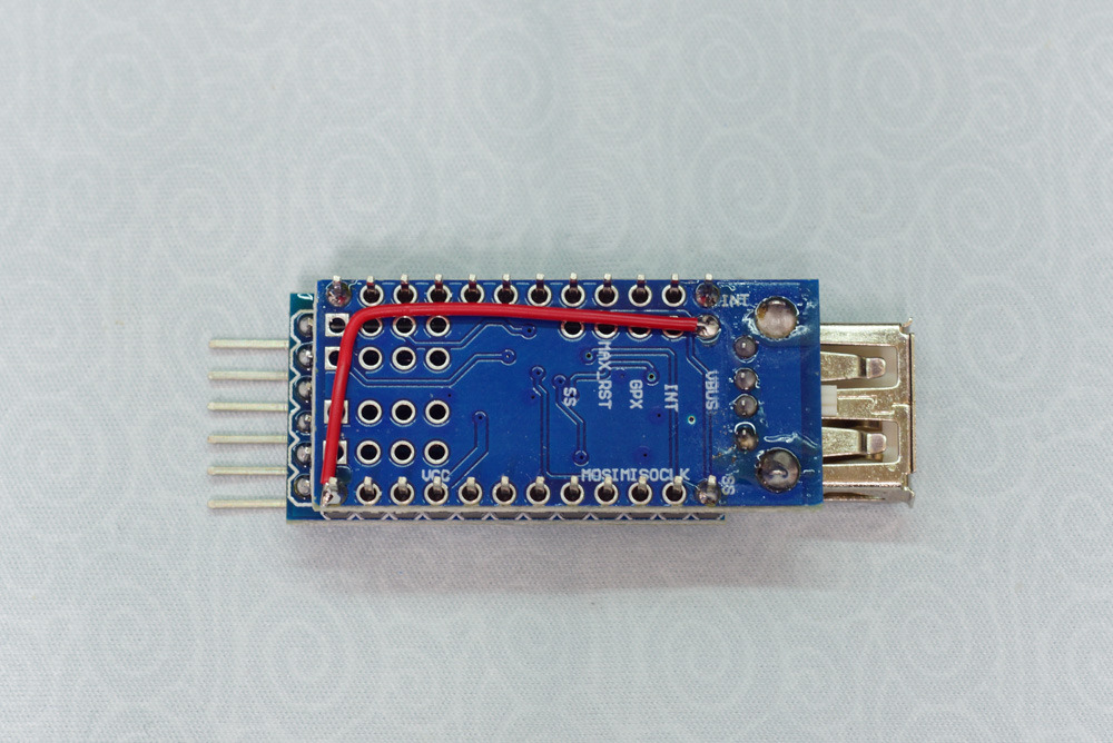 USB 단자와 FTDI 단자가 서로 반대 방향을 향하도록 맞춘다