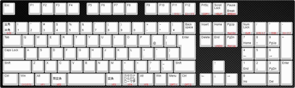 일본어 109 키보드 할당 예 (빨간색 부분이 X68000의 키 배치)
