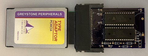 덧붙여 아래는 실험에 사용한 PCMCIA 익스텐더에 SRAM 카드(성공한 분)를 장착한 그림.