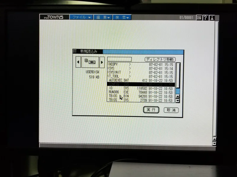 무사히 만들 수 있었으므로, 조속히 FD로 TOWNS OS를 기동! 드라이버와 명령을 CD에서 FD로 복사합니다.