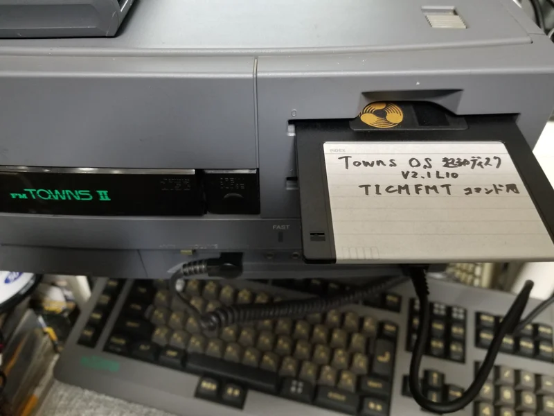 이 TOWNS OS라면 버전이 오래되어 GUI에서는 IC 메모리 카드의 포맷은 할 수 없다고 하고, CUI로부터 커멘드를 실행할 필요가 있다고 한다. 거기서 TOWNS OS가 기동할 수 있어 IC 메모리 카드의 포맷 커멘드를 실행할 수 있는 플로피 디스크를 작성합니다.