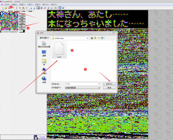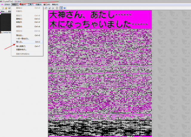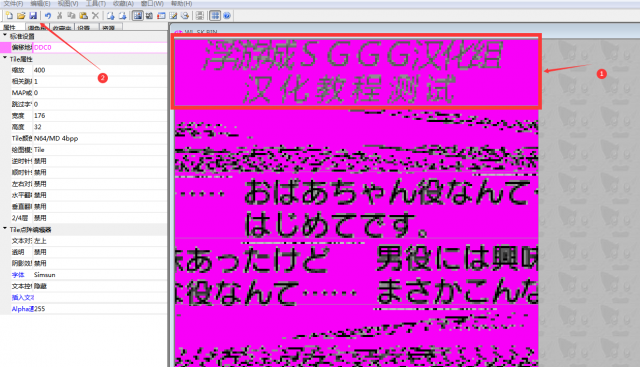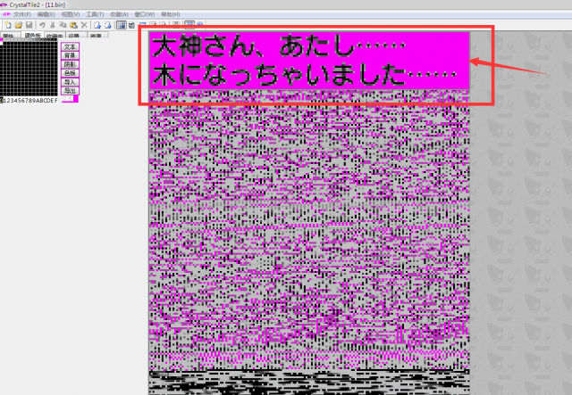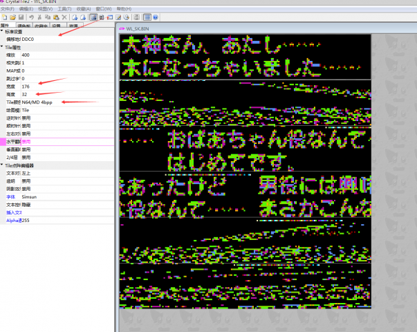 다음으로, 우리는 방금 dump의 파일을 ct2로 엽니다. 먼저 그래픽 디스플레이 모드로 전환한 다음 그림에서 화살표를 눌러 인자를 설정하면 텍스트가 표시되지만 색상이 잘못 표시됩니다.