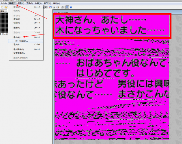 이때 우리는 ct2를 사용하여 첫 번째 텍스트 이미지를 내보낼 수 있습니다. 왼쪽 마우스 버튼을 눌러 첫 번째 그림을 선택한 다음 편집하기 - 내보내기 - bmp로 저장