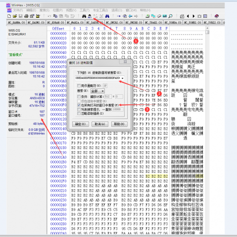 이어 winhex를 이용하여 게임 폴더에 있는 몇 개의 파일을 winhex로 한 번에 끌어다 놓고 대량 검색을 합니다. (수량이 어느 정도인 경우, 컴퓨터가 끊기지 않는 한, i7 3770k 16g 메모리의 골동품 기계도 한번에 수백 개의 파일을 끌 수 있습니다.)