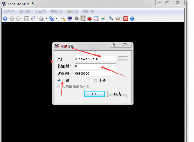 그리고 dump가 저장되는 주소와 이름을 설정해두면, 시작 주소는 0, 끝 주소는 기본, 다운로드를 선택하고 마지막으로 OK를 누르면 됩니다.